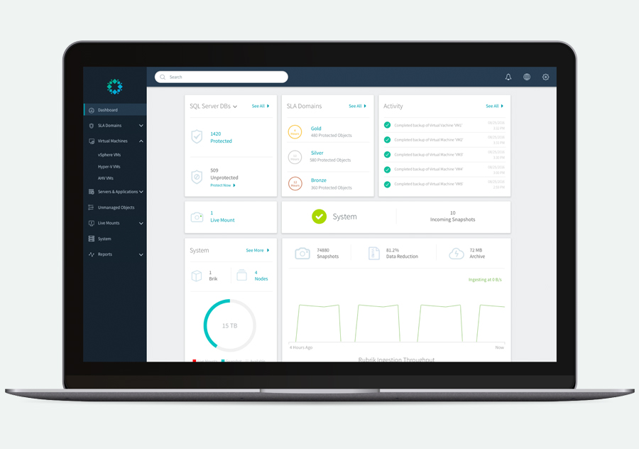 Rubrik elimina la complejidad de la administración con solo unos pocos clics a través de un único motor de políticas que organiza los acuerdos de nivel de servicio (SLA) en todo el ciclo de vida de los datos. Automatice la administración en entornos híbridos y de múltiples nubes con una interfaz programática.